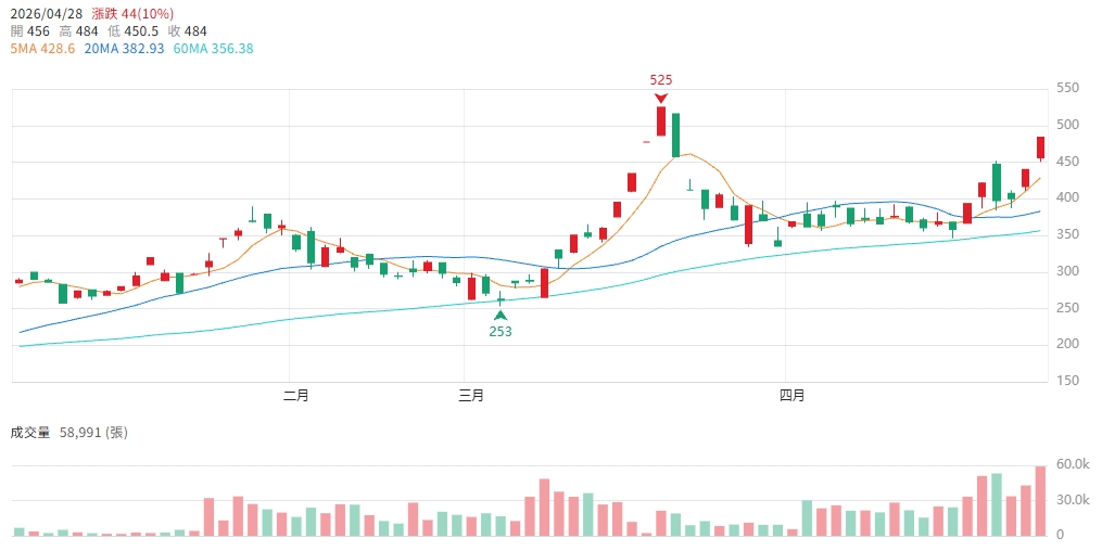籌碼面上,4月27日法人大舉回補6,811張,外資與投信同步站在買方。雖然28日股價強勢漲停,但短線與5日線乖離率達12.9%,且融資餘額達2.3萬張,顯示市場熱度極高。理周投研部認為,威剛基本面正處於最強景氣段,若能站穩 484元並挑戰500元整數大關,多頭格局將延續;反之,若跌破440元及5日線,則需留意高檔震盪風險。