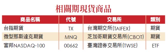 若想直接切入美國科技股,可透過台股的ETF布局美國科技股相關指數如那斯達克或費半相關,或透過期貨直接操作台指期及美股的微型那斯達克指數,或針對台股中和美國科技股連動較高的相關廠商留意間接布局機會。