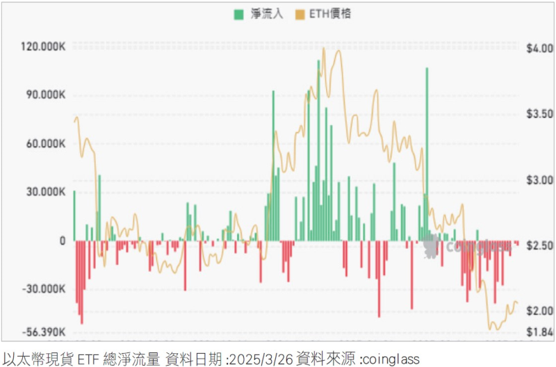 近期以太幣走勢低迷,從2024年底的高點回落至今,價格已腰斬回到2023年11月的水準,以太幣現貨ETF的淨流量在近一個月內只有一個交易日是淨流入,其餘都是淨流出,導致歷史月回報率表現已連續四個月呈負值,堪稱是歷史季回報率表現最差的一個季度,令不少幣圈投資者調侃以太坊「在歷經一輪牛市後,比特幣都已經從2萬漲到現在的8萬美元,而以太幣價格卻同樣維持在2000美元。」