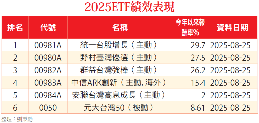 今年以來多檔主動型一度領先大盤,但短期領先未必等於長期必勝。最務實的做法,通常是「被動當地基、主動做加速器」:用低成本的大盤ETF撐住底盤,再用少量主動型抓趨勢。把投資變成流程,而不是情緒反應;長期下來,紀律往往比預測更有用。