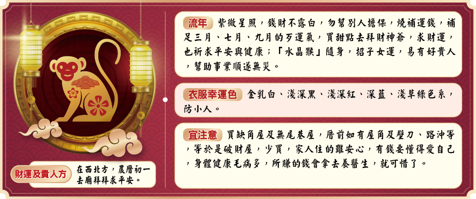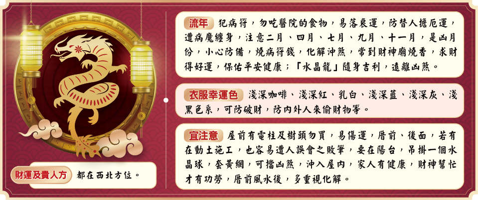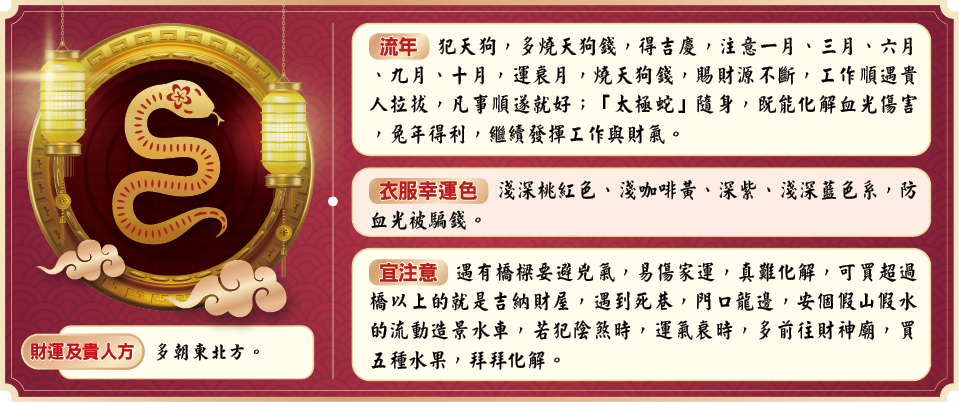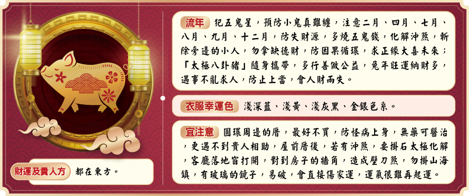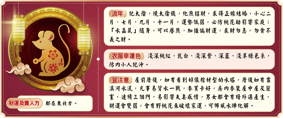 而十二生肖的流年運勢如何?張旭初也一一在後說分明,並指出那些生肖犯太歲,要安太歲,又有哪些生肖「時來運轉」鴻運當頭。