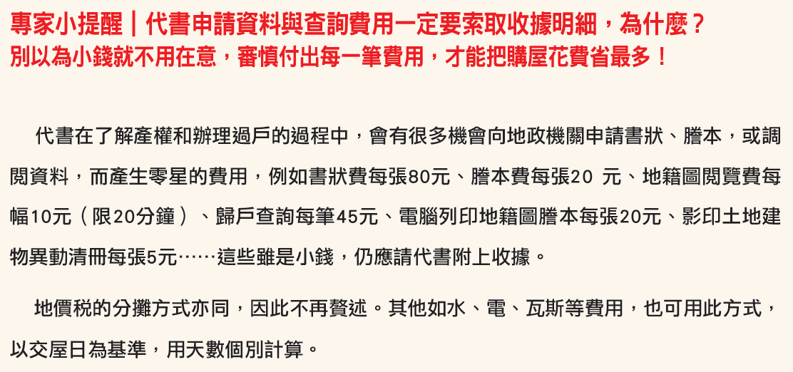 費用6 分攤當年度房屋稅和地價稅:以交屋日為基準