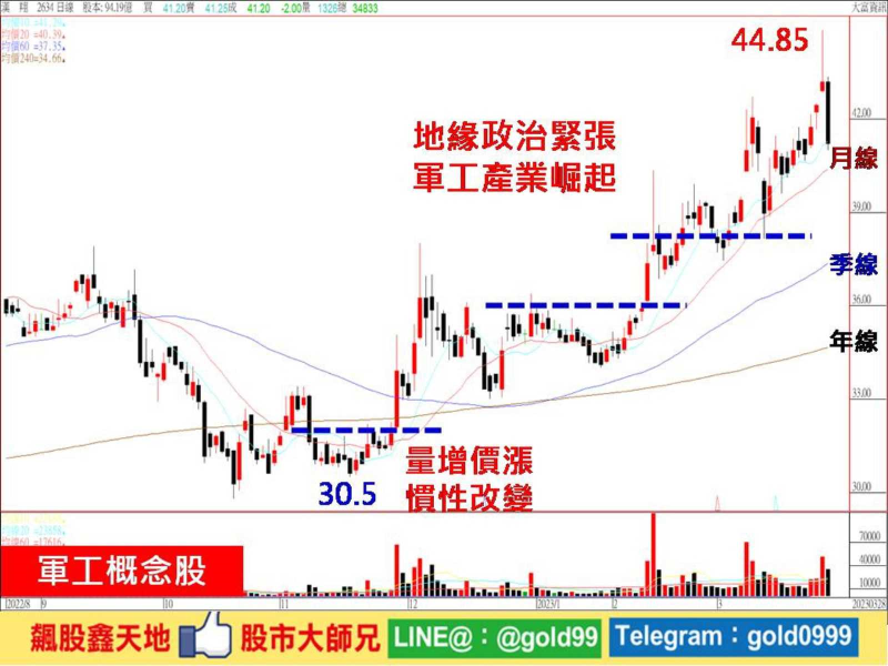 【個股推薦】漢翔(2634),國內唯一可與國際廠商共同開發機體結構、民航機引擎零件製造公司,營業項目主要分為「飛機及航空器維修類」、「引擎類」及「工業技術服務類」三大類,主要利基題材有: