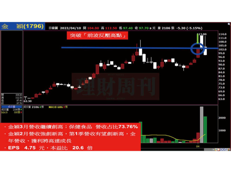 金穎生技受惠營養保健品市場趨勢持續向上未變,旗下既有產能已達滿載水準,二○二二年營收成長二○%,獲利更大幅擴增五五%,全年EPS二.二六元,成功創下歷史新高。南科二廠第一季已正式量產,營收逐月往上,金穎生技二月營收六三五五萬元,創下歷史新高,年增率多達五九.七五%,月增率為一五.一九%,累計今年前二月營收一.一九億元,年成長率為二七.二○%。隨著產線稼動率持續向上,今年營收業績將可順利延續前一年高成長動能可期。