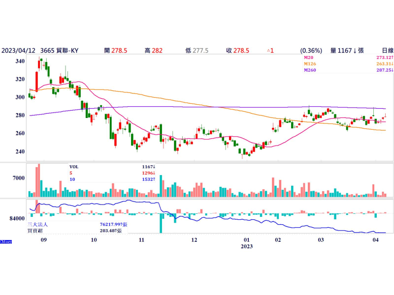 特斯拉一月推出全球降價銷售,股價從101美元飆漲至214美元,同時帶動全球電動車降價潮,中國疫情解封後為了拚經濟也推出電動車下鄉,都會帶動貿聯獲利增長。股價自去年345元回跌至231元,近期才剛開始回升,四個月底部完成,未來只要287元年線再突破,有機會發動一波全新的大多頭。
