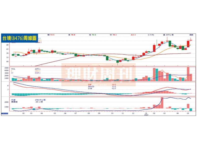 環保工程專業廠台境,去年成功轉虧為盈後,連續四季賺錢,第四季單季EPS高達5.44元,大幅拉高去年全年EPS至7.19元。今年仍有中油高雄煉油廠大單進補,業績可望更上層樓。