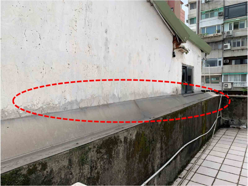 通常購屋時大都僅只注意屋齡與室內屋況,鮮少仔細觀察室外前後左右寬度與棟距問題,以相鄰兩棟之狹小基地建案為例,尤其是八米以下巷道之六、七樓華廈,棟距極為狹小(詳請參閱附圖),其最大缺點為施工過程囿於鄰棟之間距空間而無法貼磁磚,每逢下雨室內牆壁就會出現滲水情況,久而久之就會導致油漆剝落粉塵滿地,並且室內濕氣瀰漫,對居家健康影響極大,由附圖可見兩棟間距之狹小情況,如再仔細觀察頂樓於兩棟之間安裝類似雨遮之截水不鏽鋼板,即可了解其間緣由,更甭談通風採光問題。