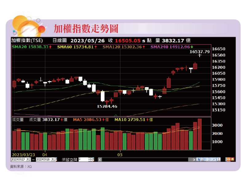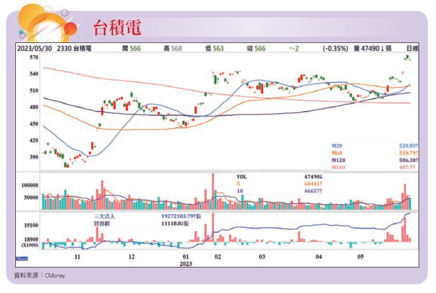 首先台股自五月十五日(一)那天,我們說出反彈就在前方後,一直到五月二十六日(五),九個交易日漲了超過一千點,其中台積電貢獻漲幅582點,吃掉超過一半以上的漲幅,也出現了嚴重的資金排擠效應,其他個股的走勢明顯疲軟很多,這種上漲結構並不健康。