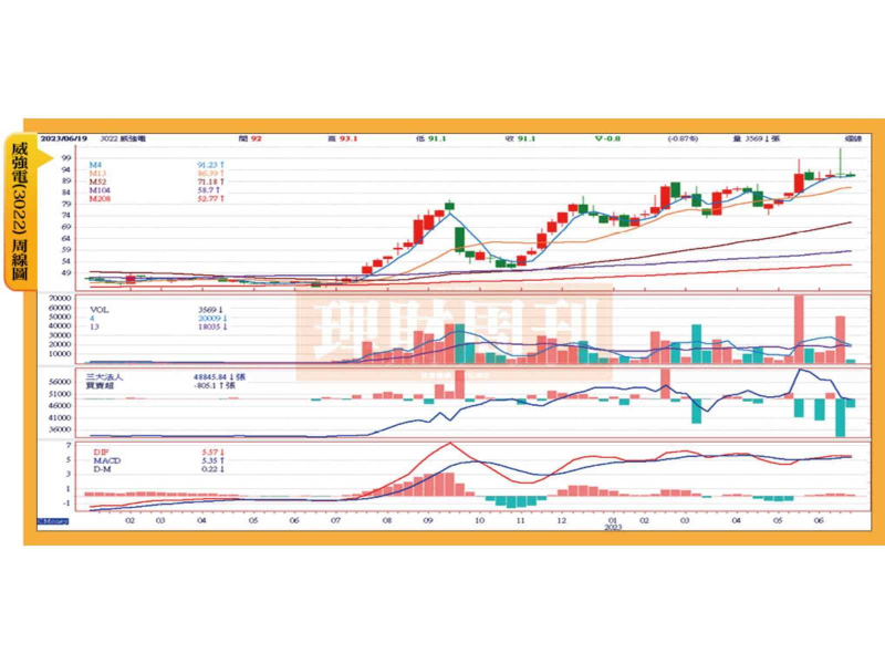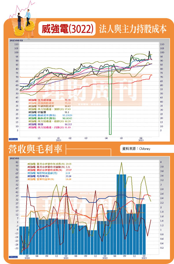 法人看好威強電今年營收可達96.14億元,年成長率達21.05%,全年EPS可達10.75元(2022年為8.45元),年增率亦達27.22%。