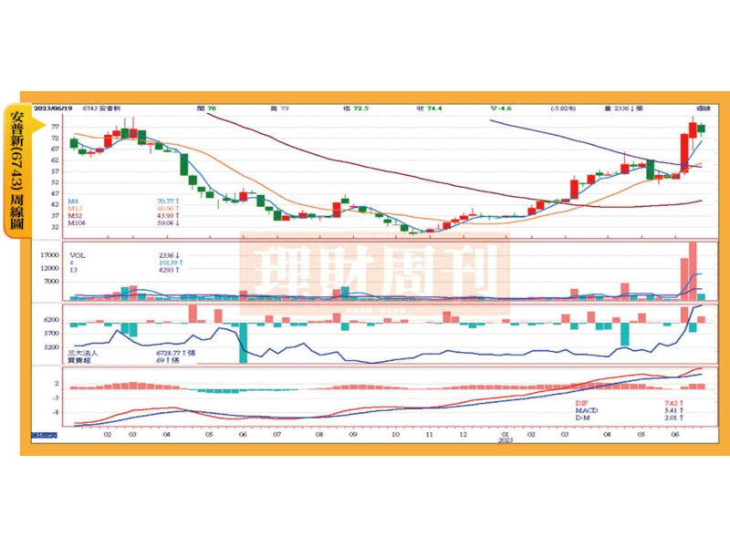 不過值得注意的是,自今年三月以來,安普新原先供貨的客戶,下單情況已經有開始回溫態勢,三、四月單月營收,已連續二個月交出20%以上月增率佳績,同時,營收年變動率也在四月份正式轉正,營運已經走出谷底、重見成長曙光。