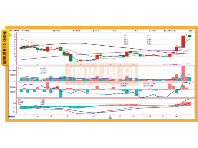 疫情解封與暑假旺季助長業績,俄烏若停戰將縮短航程大幅節省用油成本,長榮航股價6月甫創歷史新高,華航有機會落後補漲,短線壓回整理價量不失控,可望挑戰前高。