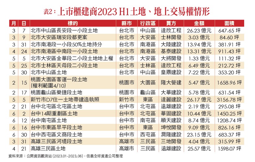 而台灣房市面臨降溫走勢,也讓建商在購地上轉趨保守,楊長達指出,根據戴德梁行統計,第二季土地交易量為新台幣200億元,累計2023上半年交易量為新台幣363億元,為2016年房地合一稅實施以來之最低量。