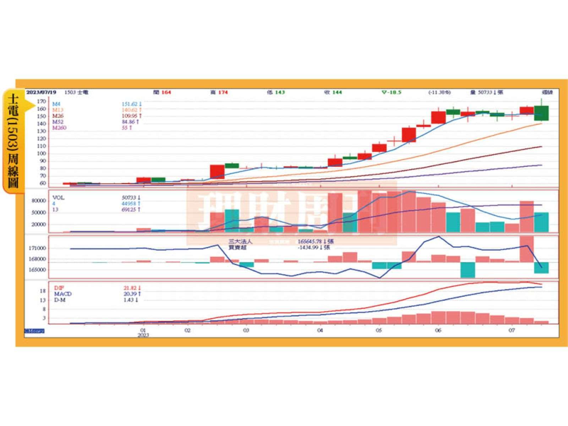 士電於7月17日除息2元,盤中完成秒填息,股價同步再創新高。士電自年初開始漲幅約一倍,目前高檔盤整中,未來有望續攻歷史最高價。