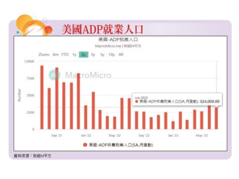 從兩個指標來看,目前勞動市場的擴張相當程度上是來自於供應面因素的改善。ADP的報告顯示,原有員工的薪資增長率從6.4%下降至6.2%,為自2021年11月以來的最低水平,這反映出目前有越來越多的勞工回到美國就業市場。