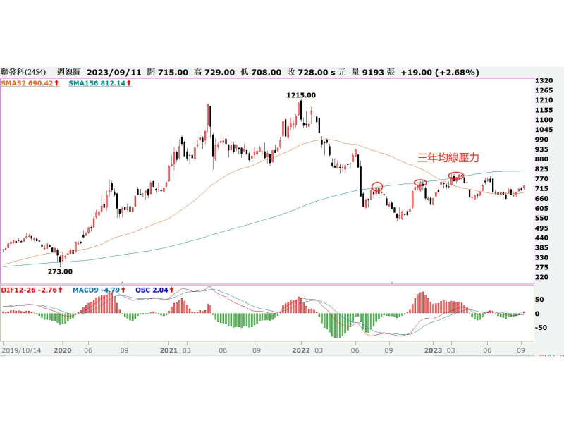 過去一年壓制聯發科的壓力是三年均線,事實上過去三年智慧型手機受到疫情影響而衰退,當然飽和也是一個關鍵,好在AI的高算力讓手機有機會重啟換機潮,而聯發科正在運用Meta Llama 2大型語言模型,賦予手機具備生成式AI的功能,之前官方的預期是最快第四季推出具有生成式AI的旗艦款,麥格理最新的目標價給798.7元。如果聯發科能走多的話,那麼對於同樣築底型態的創惟就具備指引的作用。