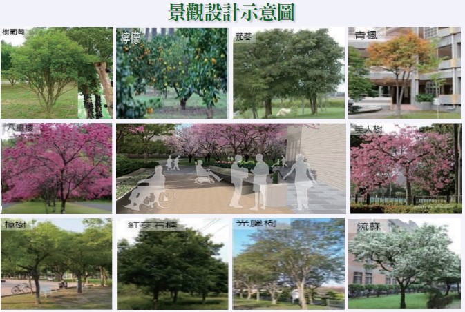 景觀設計作為友善環保計畫,也採用大量植栽與原生樹種等,說明如下:
