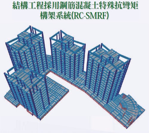 (2)結構工程採用鋼筋混凝土特殊抗彎矩構架系統(RC-SMRF),具有特殊抗彎矩構架的韌性,藉由完善的特殊抗彎矩構架韌性設計,可以控制控制由梁端塑性區發揮韌性,有效降低地震危害。