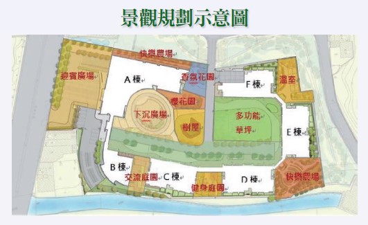 (1)一期建築空間機能A棟出租樂齡住宅、C.D.E.F棟出售樂齡住宅及B棟多功能活動室。