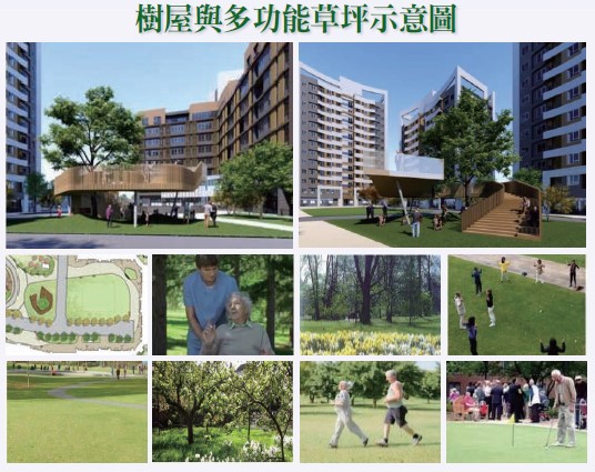 大草坪為主要廣場空間,供長者做為多功能使用。平日可運動槌球、假日則可舉辦活動等。
