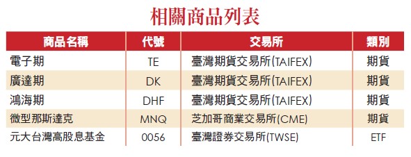 加權指數下半年開始區間盤整,根據過往經驗,多頭時市場盤整期約為三至五個月,目前時序已經進入尾聲,若再搭配未來市場可能有熱錢湧入、第四季傳統旺季,預期未來加權指數有望偏向多方發展。投資人若有意願參與第四季傳統旺季行情,可留意半導體產業與電腦及周邊設備業等相關領域的期貨商品,如「廣達期」、「鴻海期」等。