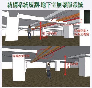 3.無梁板系統:柱頭區加厚的新一代無梁板系統,有別於傳統式的平板式系統,可提供更佳的勁度與強度。