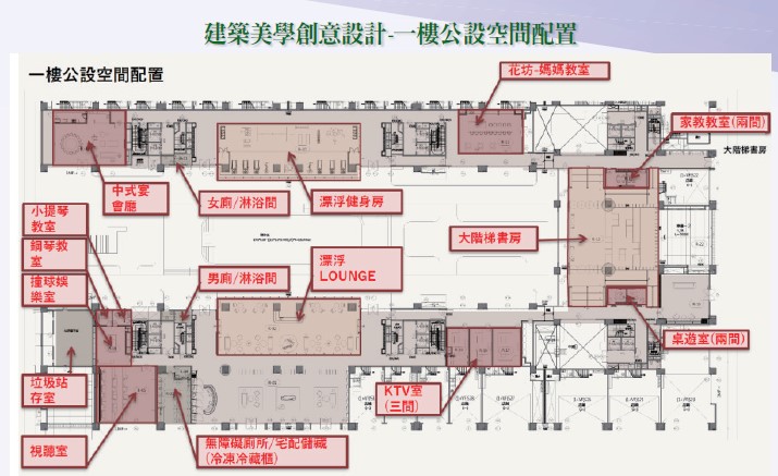 本案之夜間照明以表現屋凸天際線之量體及柱頭,並配合基座柱燈照明及陽台燈雙迴路控制以表現建築物夜間自明。