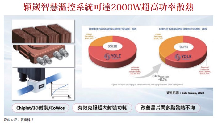 穎崴發展了一套智慧溫控系統,這樣的系統它的瓦數可以散到二千瓦的熱量。穎崴在業界首推2000W超高功率散熱方案(HEATCon Titan溫控系統)。