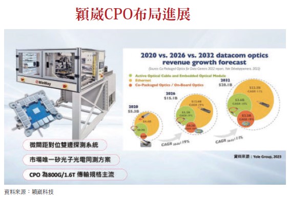 穎崴過去曾接獲北美客戶提出系光子CPO的測試,CPO組合複雜度高,測試所花費的人力、物力高於其他產品測試,技術的突破才是關鍵。穎崴整合關鍵技術為業界首創晶圓級CPO測試系統。