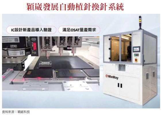 穎崴發展了一套系統,獨家研發自動化設備高速植針換針系統,已經可以從測試機台identify出來哪些針是有問題的,可以輸入這一套系統,這個機台裡面機器會主動把那些不好的探針,直接抓出來進行更換。