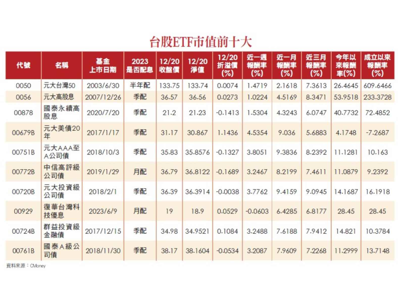 不過在投資ETF時也有「風險」,像是市場風險、折溢價、匯率、追蹤誤差,以及ETF也有可能像個股一樣下市,因此投資人在參考ETF的時候,要多注意相關資料。