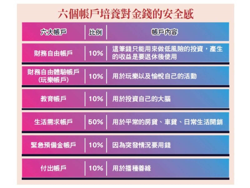 以上六個帳戶可培養你對金錢的安全感,期望每個人都能活出有錢、有愛的精采人生。