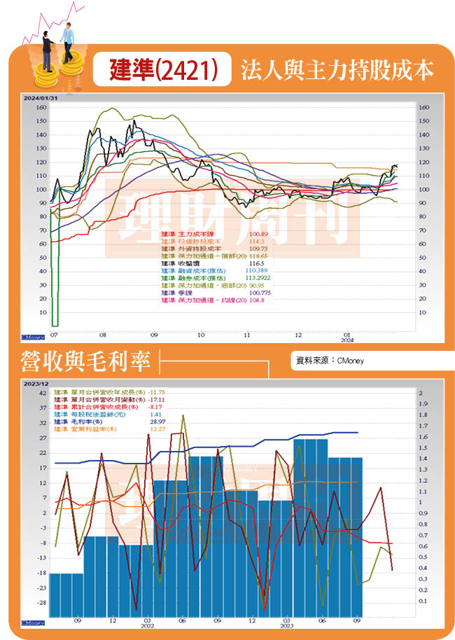 奇鋐、雙鴻、建準同為散熱大廠,受惠AI伺服器、AI PC雙題材,今年營運看旺,不過,對比股價的位階,建準還在相對低檔,有機會落後補漲。