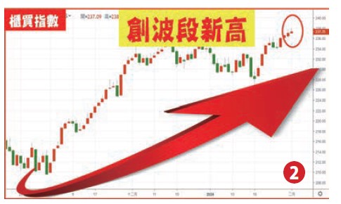 國際熱錢自去年10月開始湧進台灣,美元兌新台幣強力升值近6%,造就外資11~12月大買台股達4,201億(全年買超2,753億),一月份外資賣超17億、投信買超328億、自營商買超99億(不含避險交易)合計買超410億,加權指數於1/30創高18138點,櫃買指數2/1創高238.11點(詳圖二),顯示內資接棒外資持續作多台股,投資人更要把握近期震盪的好機會!