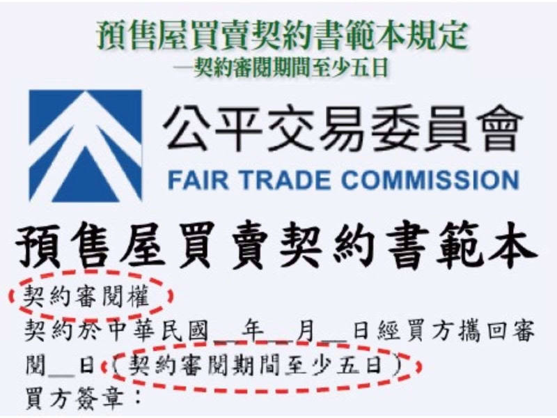 8.應注意是否要求先給付定金始提供買賣契約書攜回審閱,不當限制購屋人攜回契約審閱(請參閱附圖)。