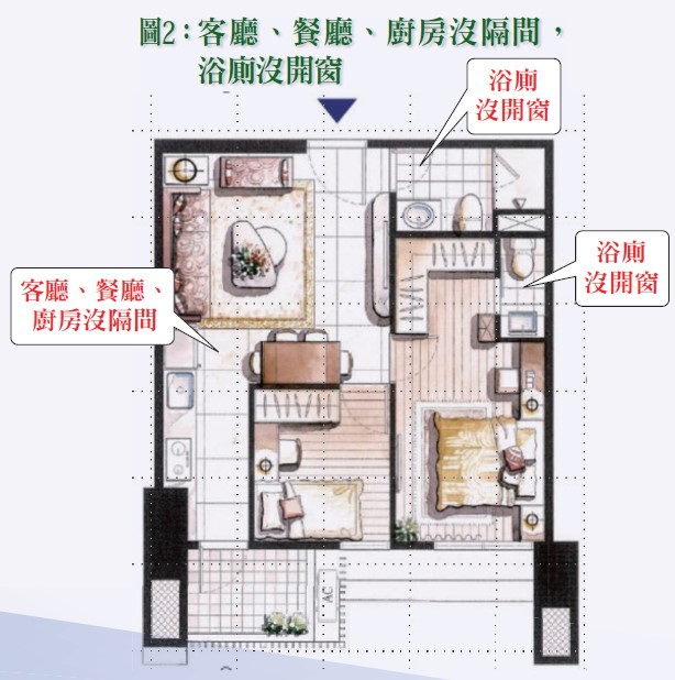 2.應注意廣告「戶戶衛浴皆開窗」、「全部衛浴皆開窗」(請參閱附圖二)之真實性。