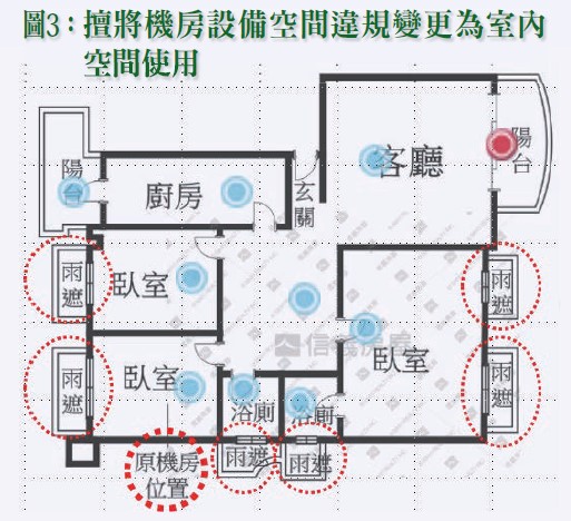 3.應注意「店面平面配置圖」將原用途為陽台空間規劃為室內空間使用之不實廣告。