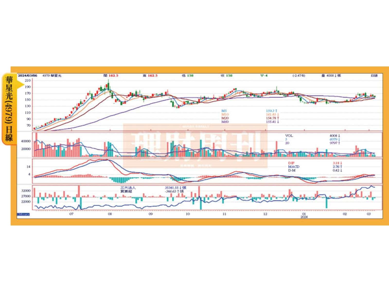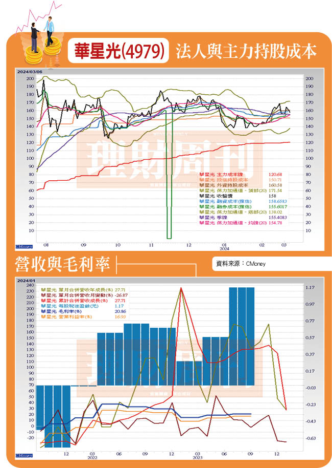 華星光去年現增認購價139元,籌碼沈澱後大戶持股漸增。預估今年800G相關產品有機會放量,營收將年增106%至61.7億元,以今年預估EPS10.5元、本益比20倍計,上看210元。