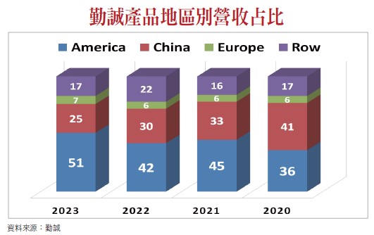 如附圖,北美地區營收占比逐年提升,從2020年36%提高到2023年51%。中國地區營收占比逐年下降,從2020年41%下降到2023年25%。(另文請參閱前期)