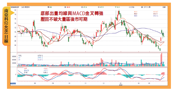 研究機構TrendForce預估,2024年第一季漲勢延續,DRAM合約價季漲幅13~18%,受惠於減產效應及HBM商機,美光股價從年初以來大漲40%,南亞科股價則是一路修正探底,近日受到美光財報及財測激勵,股價落底轉強,突破下降趨勢線,預期將展開補漲行情。