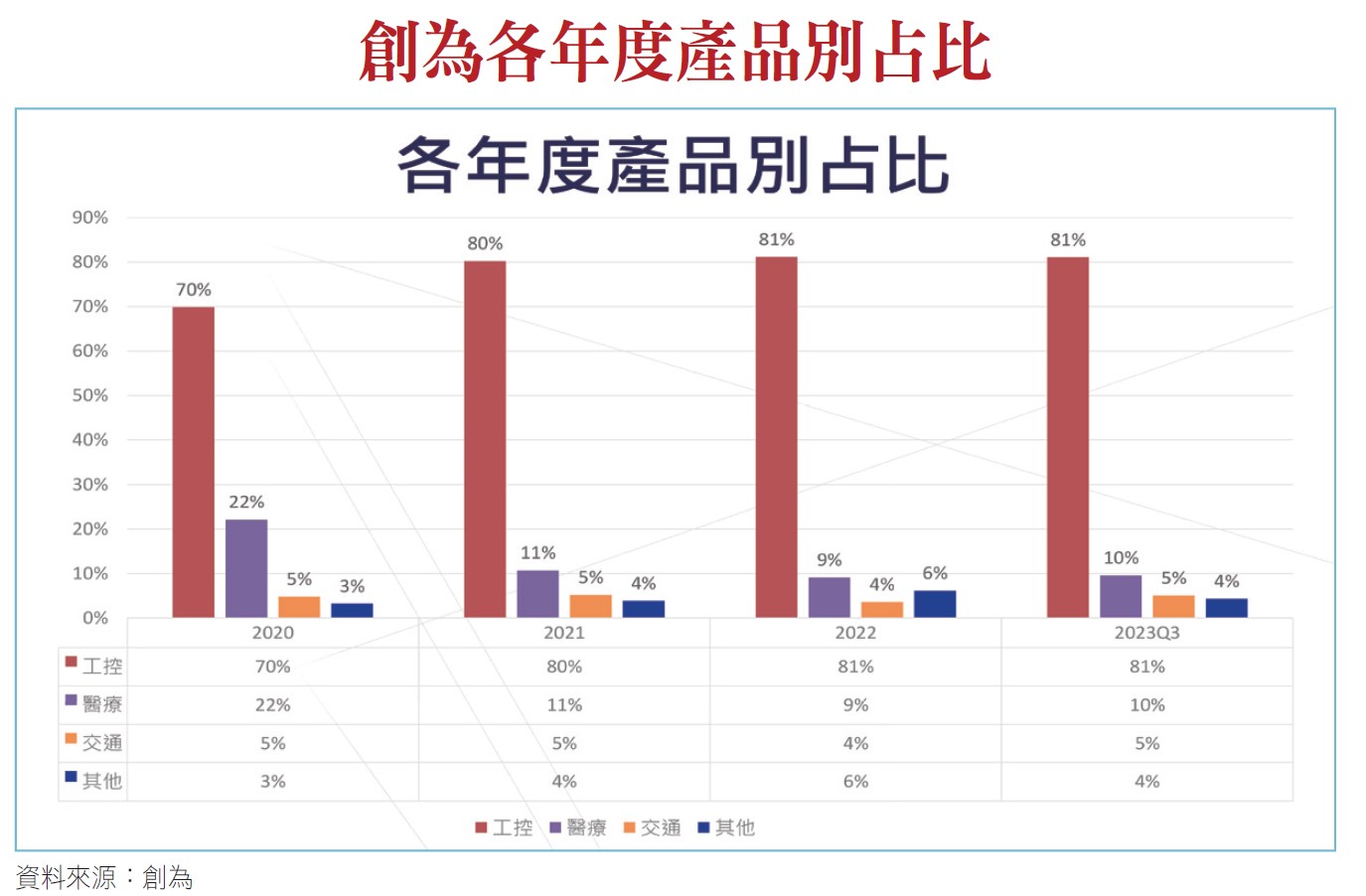 主要產品別在於工控市場,最近三年維持在80%以上。