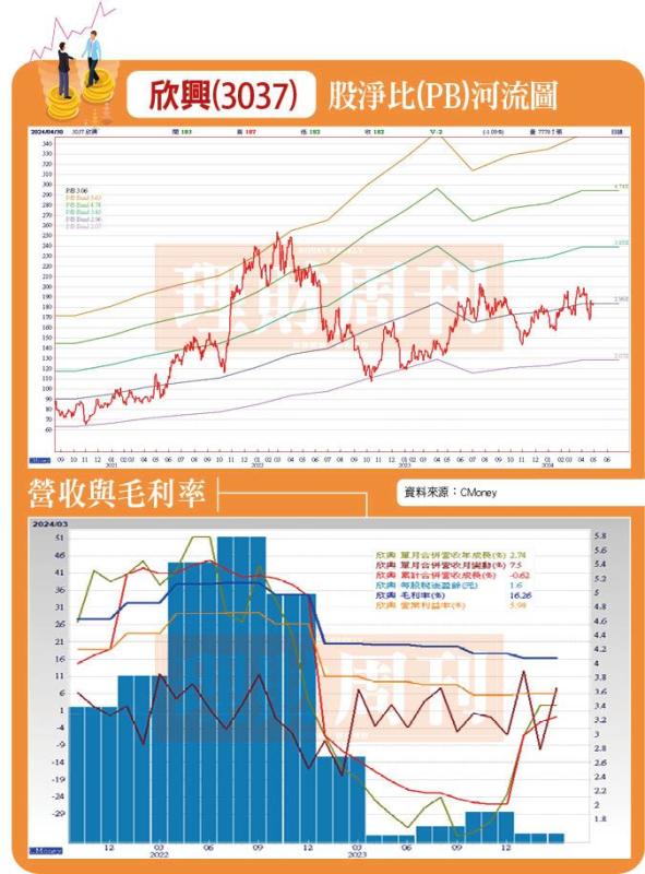 日系外資指出,除了AI基板的市占率提升之外,下一代AI伺服器中的HDI使用量也不斷上升,因此看好欣興將會是GB200系列的主要受惠者,故決定調高欣興目標價至262元,重申「買進」投資評等,同時調降今年獲利預估5%,但調高明年度營運獲利預估成長6%,預估後市股價有54%的潛在上漲空間。