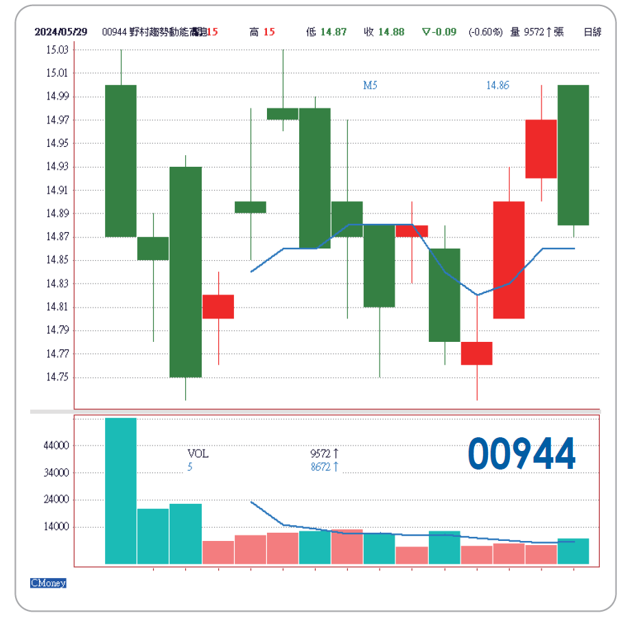 現今高股息ETF百家爭鳴,許多成分股卻大同小異,其實是因為無論是追求高股息或是加上永續、龍頭指標,甚至是成長因子等,因為一開始的選股邏輯已經固定,造成各種指數成分股差異性不大,但00944的持股與其他高股息ETF重疊度<50%;再加上臺灣趨勢動能高股息指數透過動能指標,根據野村投信官網數據顯示,自2015/11/17至2024/2/29累積報酬高達416.53%,年化報酬率21.9%,波動度僅13.7%,報酬率明顯高於大盤甚至台灣高股息指數這些老牌指數,波動度卻較低,顯示該指數大幅提升報酬且降低波動,驗證了「低重疊度」和「追蹤強勢股」的鮮明特色。