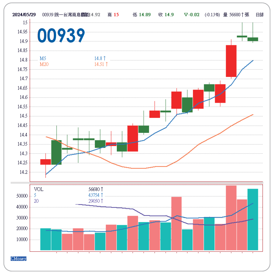 00939指數以臺灣上市上櫃股票為母體,藉由市值、營業利益率以及配息率等指標,篩選出40檔成分股,主打兼顧「高股息」及「高效率」的投資組合並且其採用的是完全複製法,也就是說在一般情況之下,00939的持股必須盡可能貼近追蹤指數的成分股。近五年平均股利率達9.85%,且由於00939是月配息ETF,具有穩定每月現金流的作用,可降低被課徵到二代健保補充保費的機率,在高股息ETF中屬於新一代的產品類型,同時具有高股息、月配息、動能調節、報酬增益等優點,是值得考慮的投資新選擇。