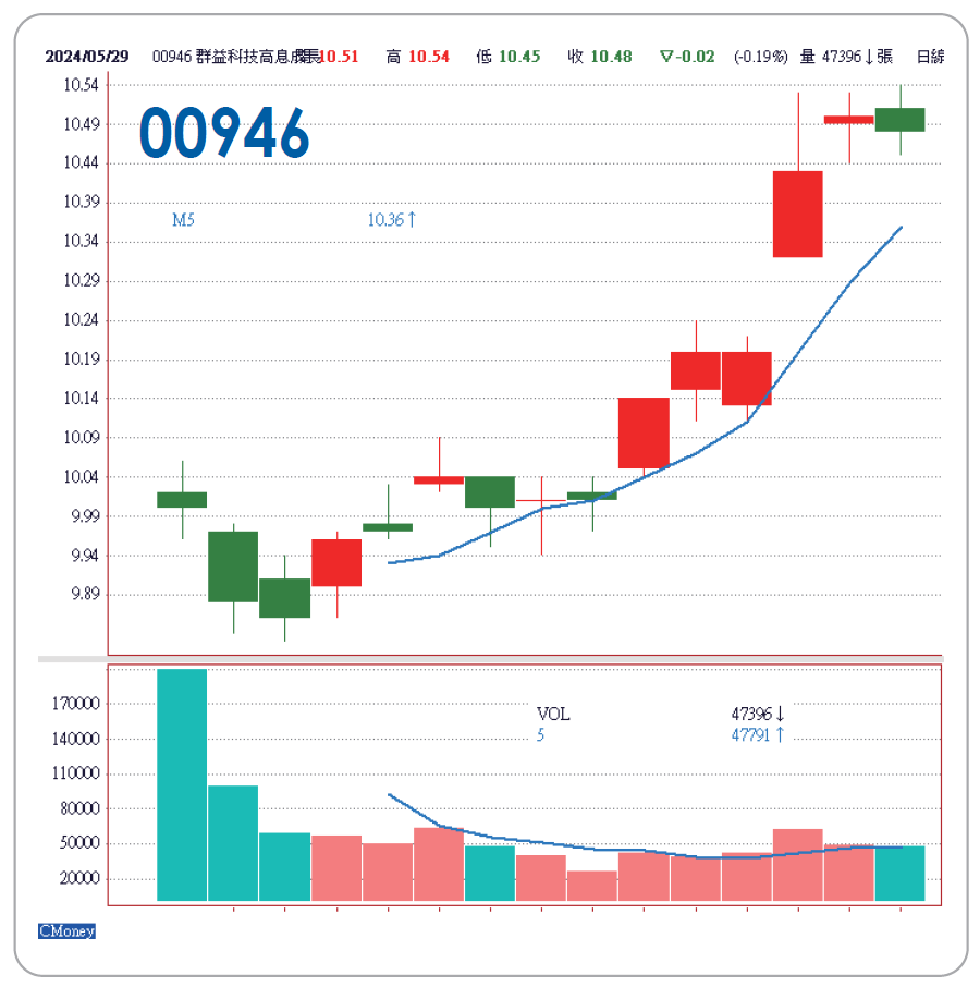隨著台股5/28再度創下歷史新高,觀察這五檔新成立的台股高息ETF表現,清一色都呈現上漲走勢,其中以00946漲幅0.67%為最高,其次是00944的0.47%;截至5/28,也只有00946和00943收盤價維持在發行價之上,其餘三檔仍處於破發的情況,距離發行價仍差最後一哩路。再以自成立以來的報酬率來看,也是00946和00943報酬率居於冠亞的地位,在這當中,00939報酬率為-0.73%表現最差。綜合來看,截至5/28,整體而言,表現最好的明顯是00946,其次是00943。