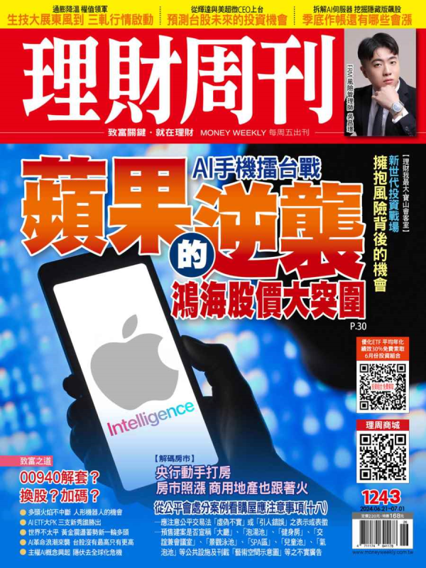 台積電站上900元,鴻海攻上200元。《理財周刊》1234、1240期封面做鴻海,1236、1242期封面做台積電,相信理周忠實讀者與鐵粉已經心領神會,也許中小型股此起彼落,但這兩檔龍頭創高,就拉開了台股整體的比價空間。中國與三星相繼推出AI手機大受歡迎,蘋果Siri邂逅ChatGPT,iPhone 16將在九月出貨,相關供應鏈已開始拉貨,包括晶圓、IC設計、散熱、被動元件、組裝、PCB、載板、石英元件、PA功率放大器、Typc-C控制晶片等都動起來,其中,擁有「雙A」(AI+ Apple)概念的台積電和鴻海頻頻創新高,更帶動相關族群紛紛轉強。台積電千元以下很便宜已成市場共識,鴻海以明年EPS估本益比不到15倍,與同業相較,仍有比價更上層樓的實力。