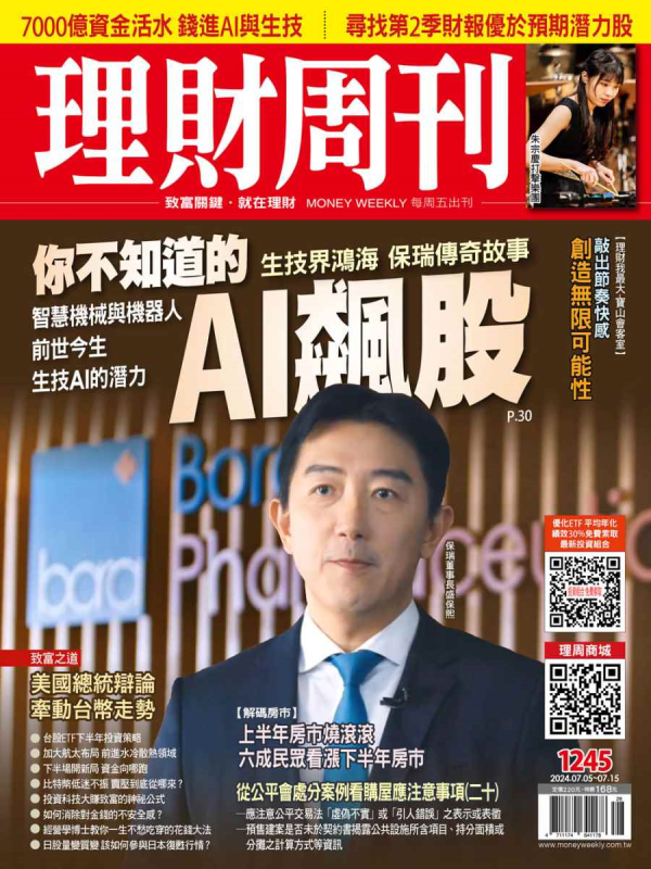 台積電(2330)7月18日法說會,期間外資法人紛預期不僅第三季營收季增挑戰新高,更估明年資本支出大幅調升6%至370億美元,台積電為AI龍頭,AI大趨勢銳不可擋,萬物皆AI時代已來臨,若您是聰明投資人AI發展絕非侷限科技業,其應用與外溢延伸即深且廣,反應在資本市場也具相同效應,上期封面已將AI黑洞效應延伸至重電與生技做...請看《理財周刊》1245期更多精采內容