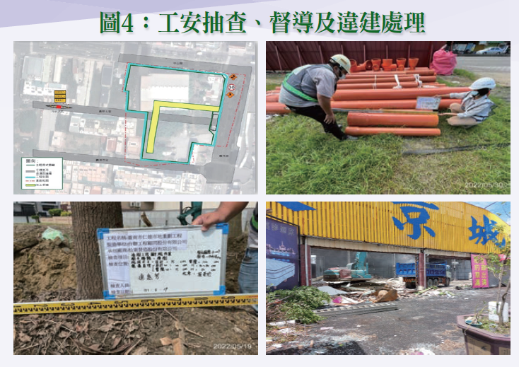 (一)仁德市地重劃工程工項內容單純,動員準備期間即進行現有構造物拆除,再依序進行整地工程、污水工程、排水工程、市區道路地下管工程、自水工程、道路工程、交通工程照明工程、景觀工程。