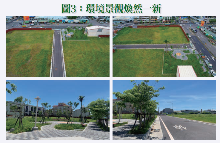 綠地面積約0.6公頃,採簡易綠美化及達到多功能空間,提供小型活動廣場活動草坪。