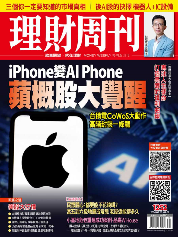 蘋果最先製造出智慧手機,對於智慧手機的軟硬體整合及生態系應用,一直技冠群雄,三星與中國AI手機市占雖暫時領先,但以蘋果研發實力及十億粉絲的影響力,iPhome16問世可能會引爆AI手機換機潮。另一方面,台積電CoWos大動作購廠擴產,進入高階封裝一條龍生產,加速滿足客戶需求。而全球化布局的台積電營運模式再進化,從整併高階晶片生產,到先進封裝一條龍式供應體系,將開啟獲利...請看《理財周刊》1252期更多精采內容