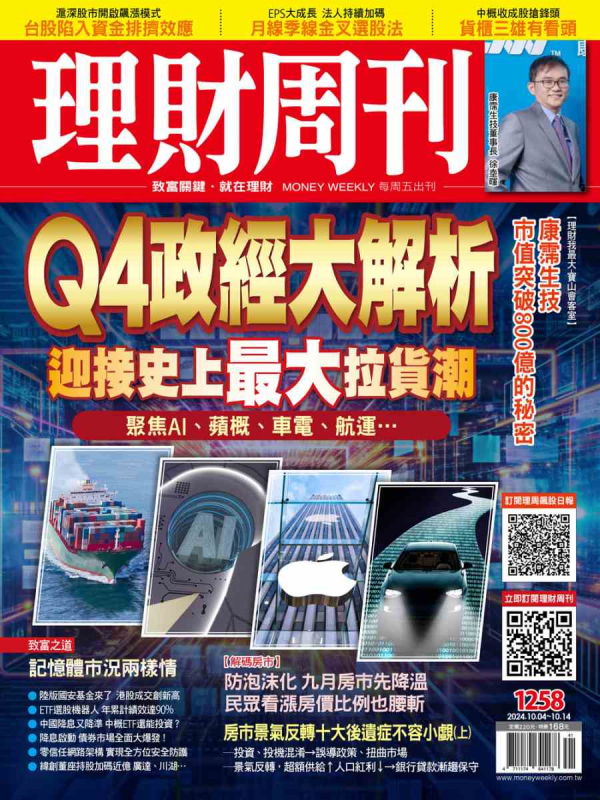 在全球市場掀起AI需求的帶動、加上蘋果與華為新機發表,以及台積電(2330)因應AI晶片供需擴充先進封裝(CoWos)產能,推升相關供應鏈族群股的出貨量,為台灣上市櫃創造最強的第三季營收表現,面對第四季傳統旺季到來,電子產業供應除了延續第三季的需求外,伴隨即將到來的萬聖節、感恩節、聖誕節與新年假期的採購旺季,若排除一切不確定的國際政經干擾因素影響...請看《理財周刊》1258期更多精采內容